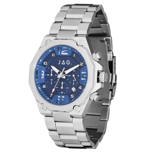 JAG MENS SILVER S/STEEL ANAGLOUE NAVY FACE J2655A