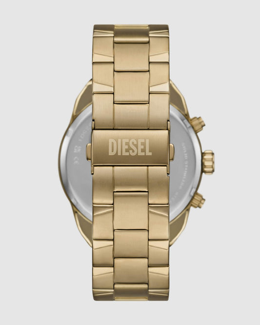 DIESEL 49MM Spiked Stainless Steel watch features a black sunray dial, w a gold tone metal band