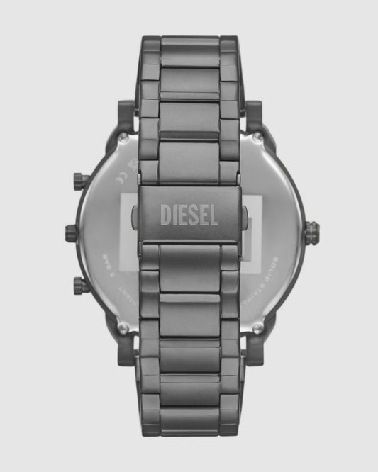 Diesel Mr. Daddy watch features a gray textured dial w gunmetal band
